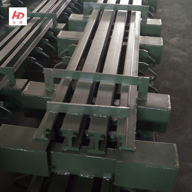 (4)從目前已經(jīng)施工的伸縮裝置來看,板式伸縮裝置的平整度較好,其原因是膠體內(nèi)不僅加入了足夠數(shù)量的鋼板以增加變形體的剛度,而且又有足夠數(shù)量的鉚釘使伸縮體同橋梁變形體的聯(lián)結(jié)比較牢固,不至于象原來空心板橡膠伸縮縫那樣易于脫出。而且改善了施工工藝,注意到施工時的安裝溫度,其定位值A(chǔ)易于控制。經(jīng)實橋施工2年來的考驗效果良好。其缺點是變形似欠靈活。據(jù)有關(guān)方面介紹每延米須施加2.5t的壓力方能達到其設(shè)計縮短值,而且價格比較貴。